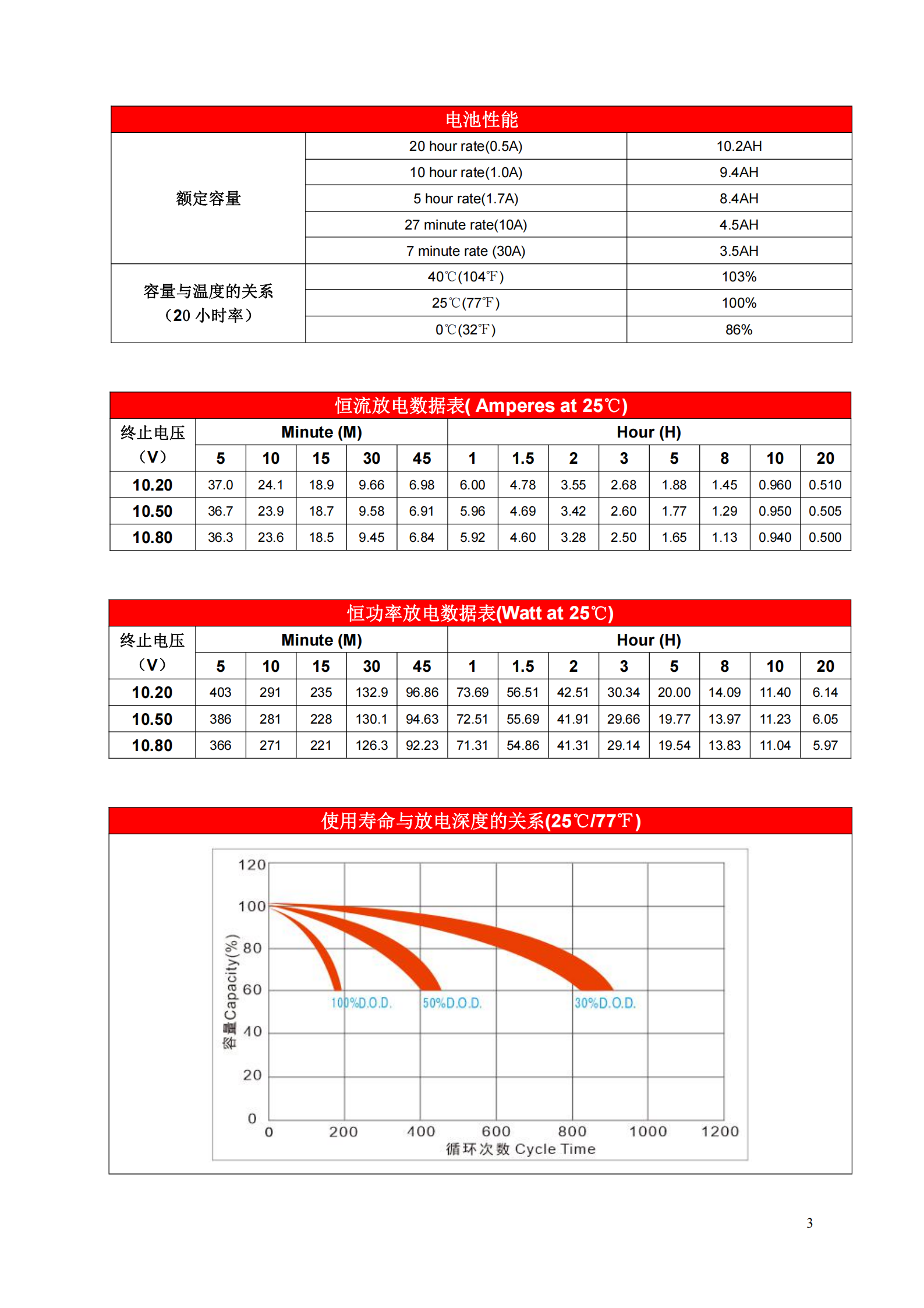 充放电性能:标准充电电流1A,最大充电电流3A,放电截止电压10.5V。