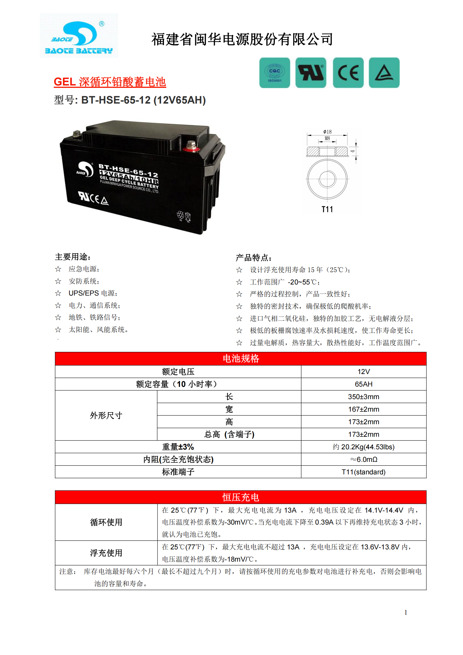 设计寿命长:设计浮充使用寿命12年(25℃) |