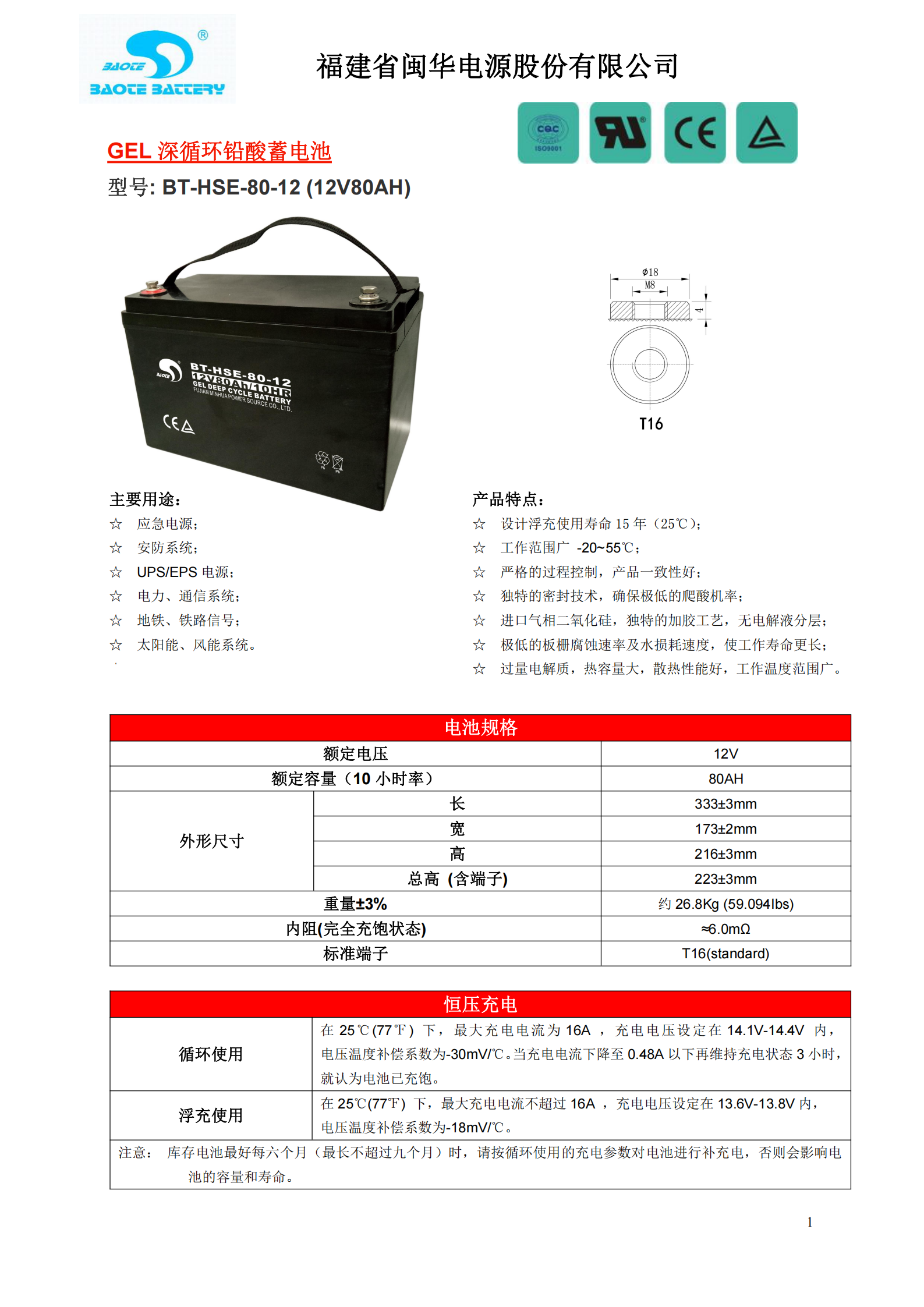 设计寿命长:设计浮充使用寿命12年(25℃) |