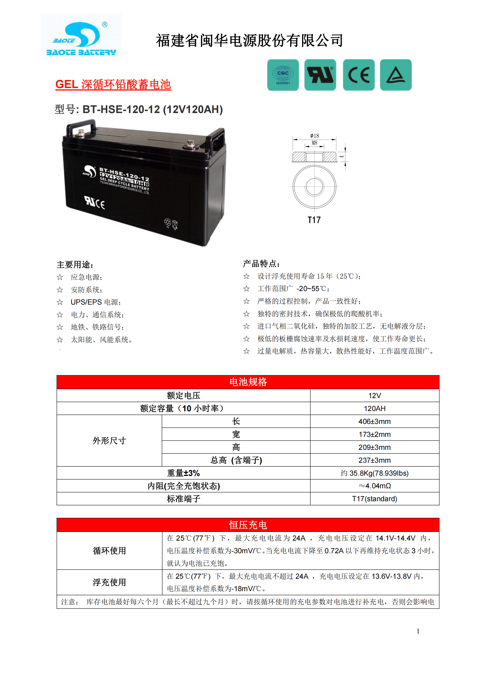 设计寿命长:设计浮充使用寿命12年(25℃) |